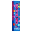 milchschokolade (64%) (süßungsmittel: maltitol, steviolglycoside aus stevia; milchpulver, kakaobutter, kakaomasse, ballaststoffe (inulin), butterreinfett [aus milch], molkenpulver [aus milch], emulgator: lecithine [aus soja]), aroma), süßungsmittel: maltit, steviolglykoside aus stevia, reisstärke, verdickungsmittel: gummi arabicum, süßstoff: sorbit, farbstoffe: betanin, carotine, ammoniak-zuckerkulör, anthocyane, curcumin, überzugsmittel: carnaubawachs, milchschokolade: kakaomasse: mindestens 30%.