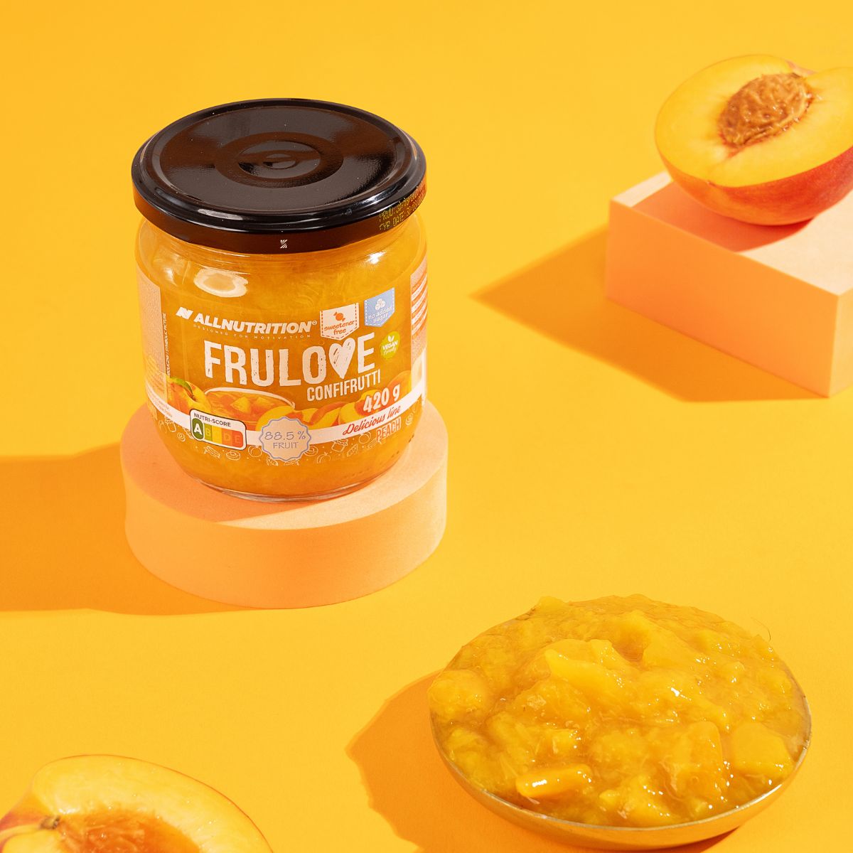 ALLNUTRITION FRULOVE CONFIFRUTTI PEACH ist die wahre Essenz von Früchten, deren Süße ausschließlich aus ihnen selbst stammt. Die ideale Wahl für alle, die auf Inhaltsstoffe und Geschmack achten! FRULOVE CONFIFRUTTI PEACH ist eine köstliche Pfirsich-Ergänzung für deine Mahlzeiten.