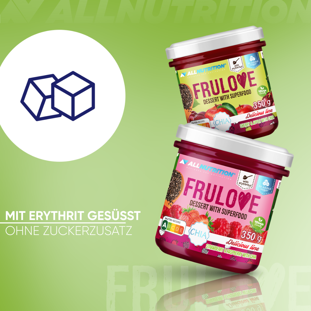 Mit FRULOVE DESSERT WITH SUPERFOODS achten wir darauf, dass süßer Geschmack keine Kompromisse bedeutet. Unser Dessert wird mit Erythrit gesüßt – einem Süßungsmittel ohne Kalorien, das es ermöglicht, den köstlichen Geschmack zu genießen und gleichzeitig den Zuckerkonsum zu reduzieren. Das Produkt enthält nur natürlich vorkommende Zucker. Eine hervorragende Wahl für alle, die bewusst weniger Zucker konsumieren möchten, ohne auf ihre Lieblingsdesserts zu verzichten.