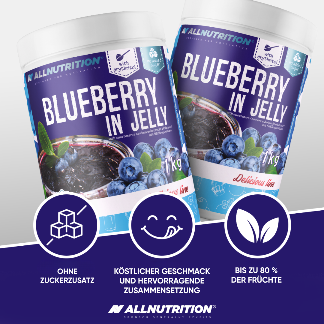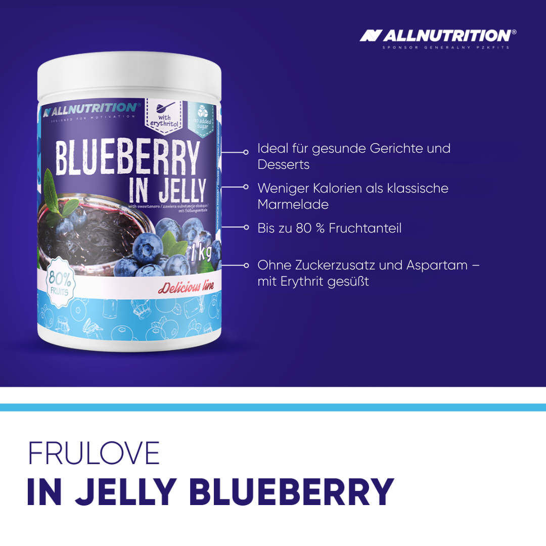 ALLNUTRITION FRULOVE IN JELLY BLUEBERRY ist eine köstliche fruchtige Grütze ohne Zuckerzusatz und mit ganzen Beerenstücken, die bis zu 80 % Fruchtanteil haben! Kreiert für alle, die auf ihre Figur achten und dabei nicht auf ein wenig süßen Genuss in ihrer Ernährung verzichten wollen.