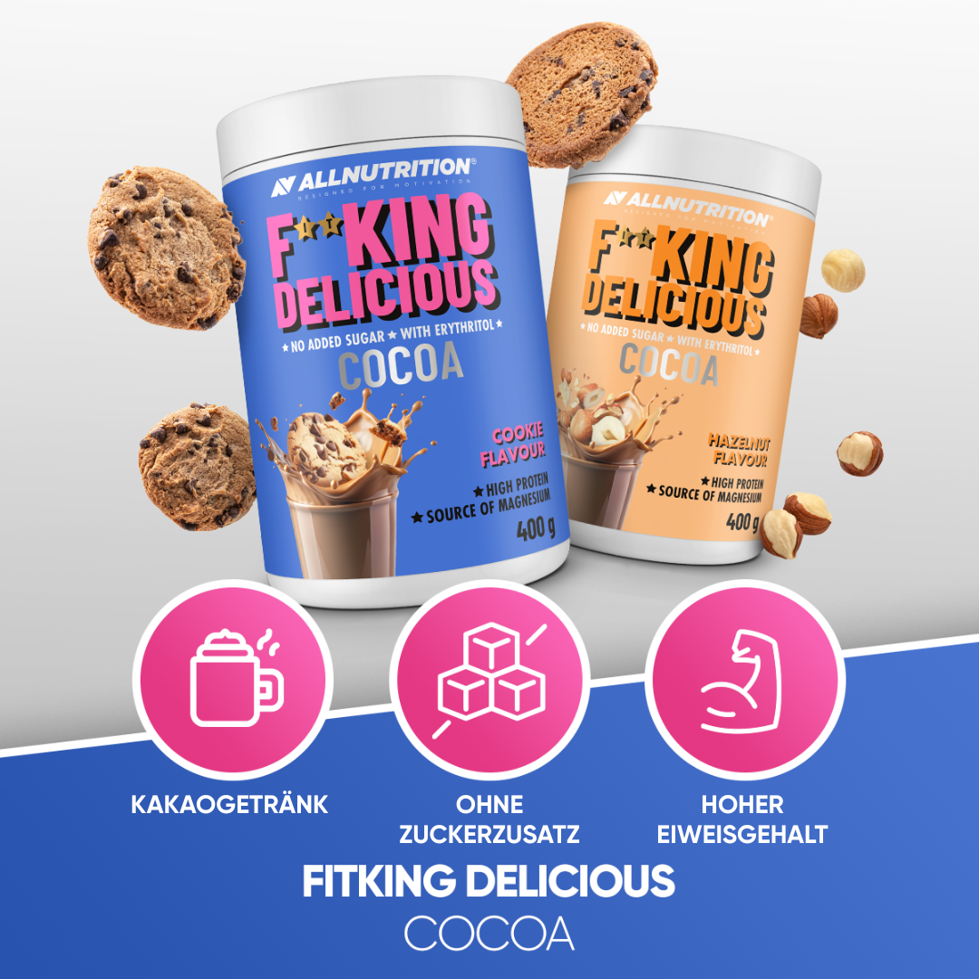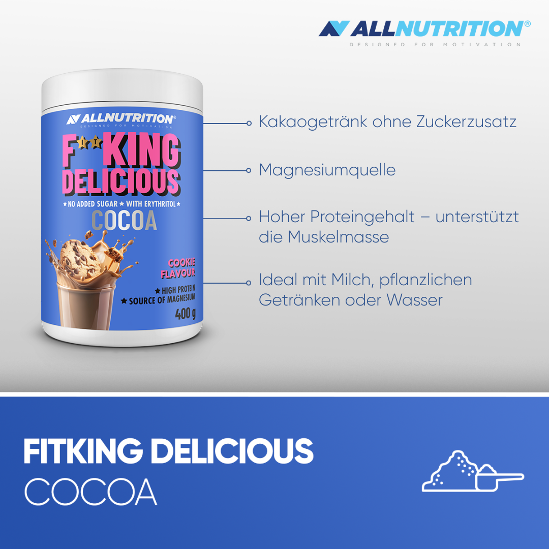 ALLNUTRITION FITKING DELICIOUS COCOA ist eine moderne Alternative zu traditionellem Kakao – ohne Zuckerzusatz, dafür mit hohem Eiweissgehalt und zugesetztem Magnesium. Dieses funktionelle Getränk mit intensivem Kakaogeschmack ist die perfekte Wahl für alle, die auf ihre Figur achten, Zucker in der Ernährung reduzieren oder ein leichtes, wertvolles Dessert suchen.