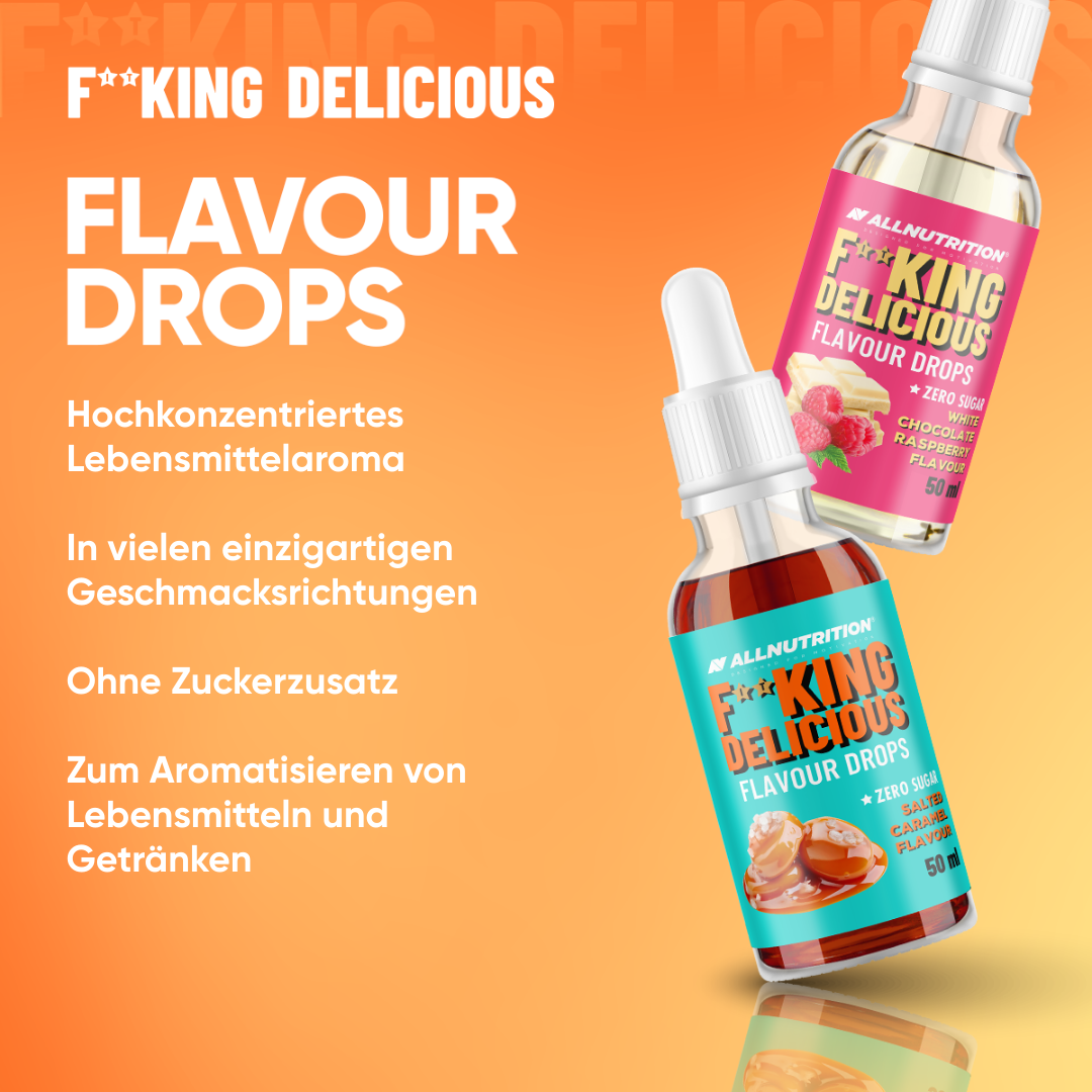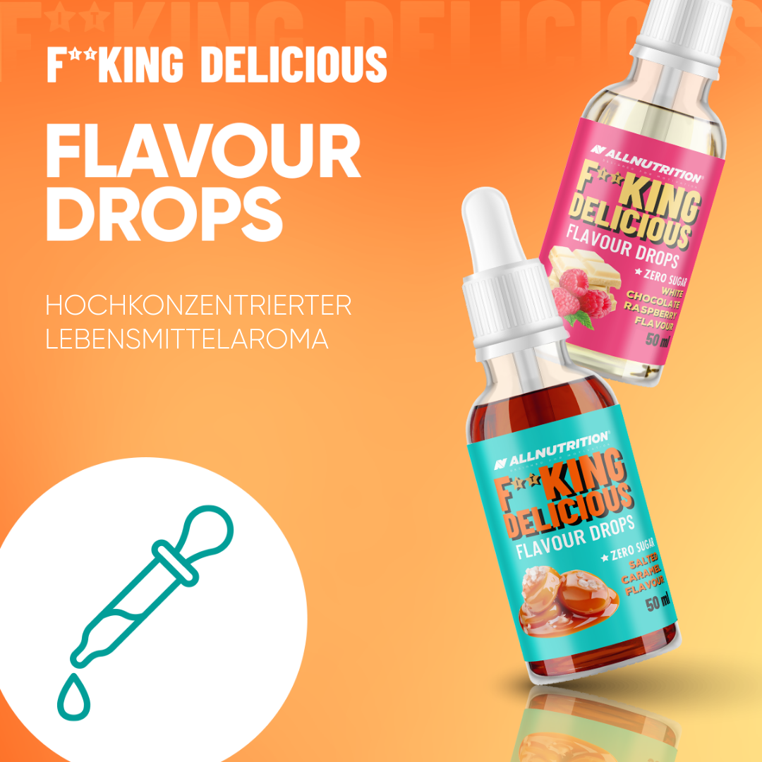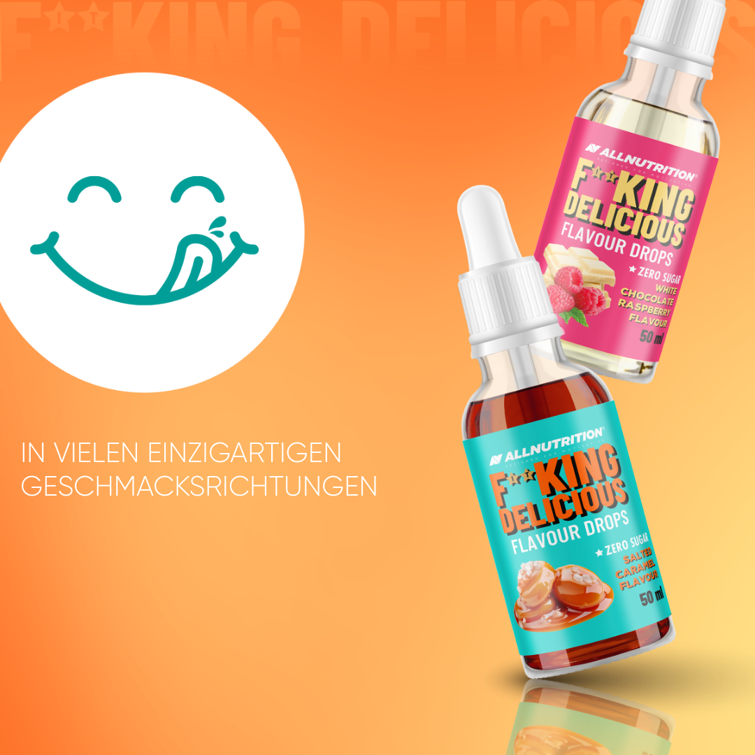 ALLNUTRITION FITKING DELICIOUS FLAVOUR DROPS ist ein hochkonzentriertes Lebensmittelaroma mit Süßungsmittel, das Speisen und Getränken mit nur wenigen Tropfen Geschmack verleiht.