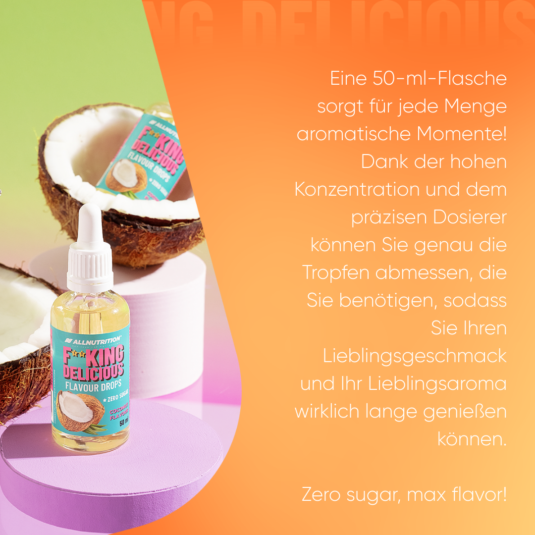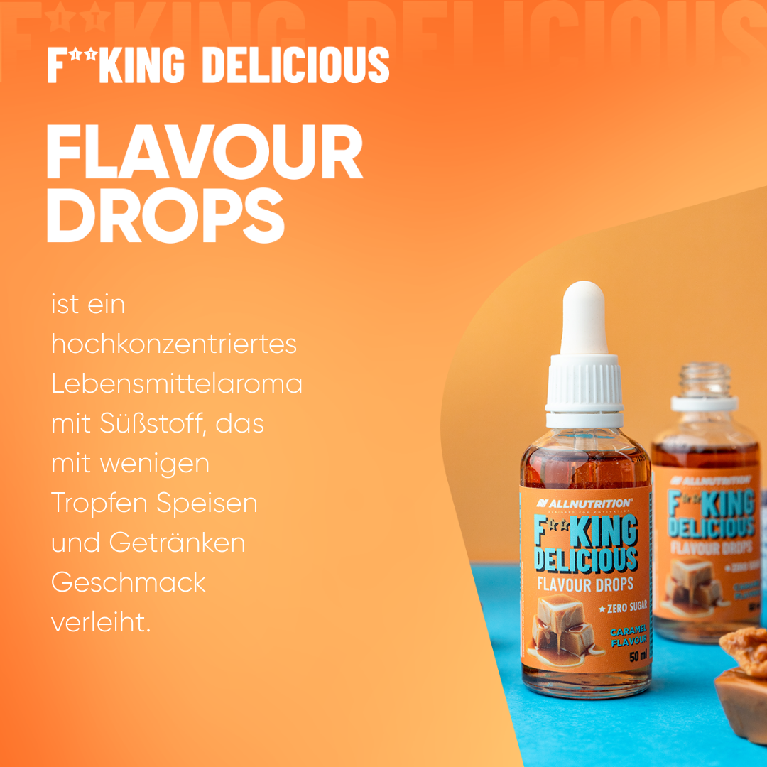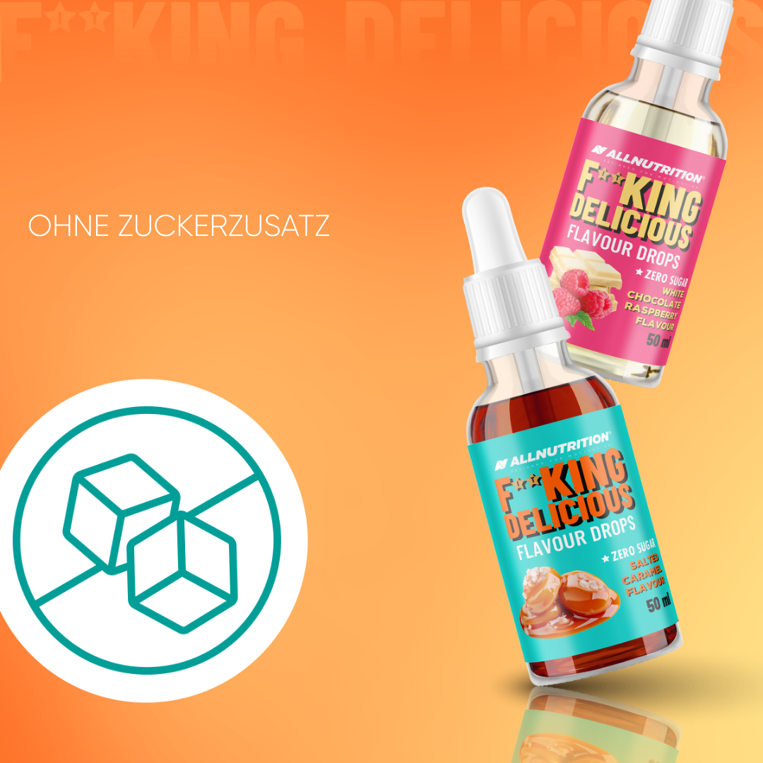 ALLNUTRITION FITKING DELICIOUS FLAVOUR DROPS ist ein hochkonzentriertes Lebensmittelaroma mit Süßungsmittel, das Speisen und Getränken mit nur wenigen Tropfen Geschmack verleiht.