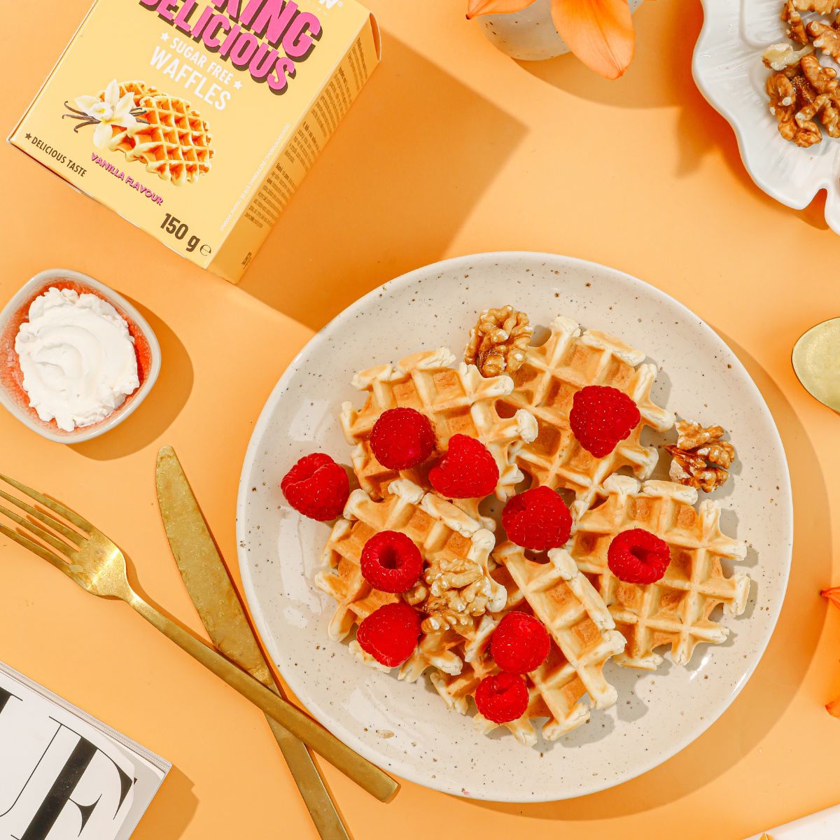 weizenmehl, süßungsmittel: maltit, pflanzliche öle und fette (palm und raps), eier, soja mehl, fructooligosaccharide, modifizierte maisstärke, stabilisator: glycerin, vanillegeschmack, salz, emulgator: lecithine [aus soja], backtriebmittel: diphosphate, natriumcarbonate, calciumphosphate, konservierungsmittel: kaliumsorbat, zitronensaft, johannisbrotprotein, johannisbrotfaser