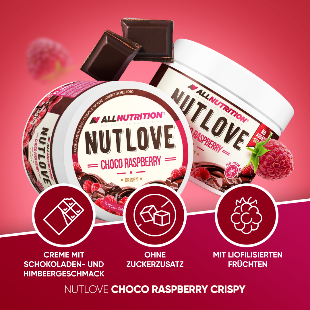 Jetzt musst du nicht mehr auf Süßes verzichten – NUTLOVE CHOCO RASPBERRY ist das kleine Glück, das dich jeden Tag erwartet!