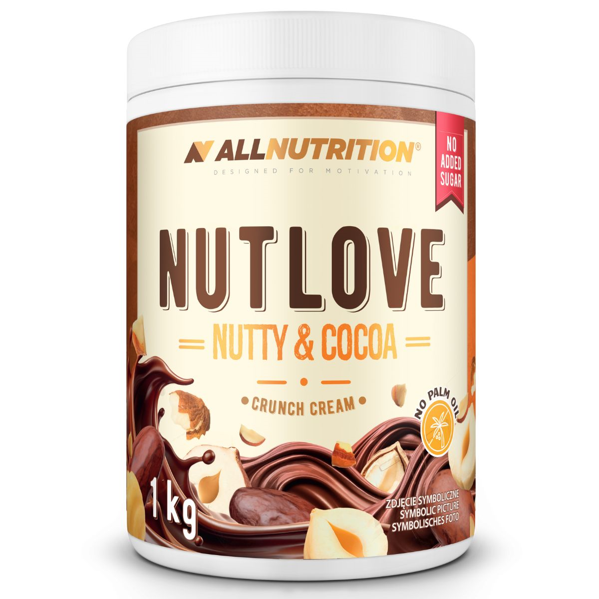 ALLNUTRITION NUTLOVE NUTTY & COCOA ist eine köstliche Schoko-Nuss-Creme ohne zugesetzten Zucker und Palmöl. Angereichert mit Haselnüssen in der perfekt knusprigen oder glatten Variante. Dies ist eine weitere Ausgabe der leckeren Creme, die dir sicher gefallen wird. Jetzt in einer größeren Verpackung – ganze 1 kg!
